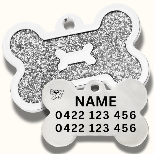Engraved Dog Tag for Pets Designer Glitter Bone